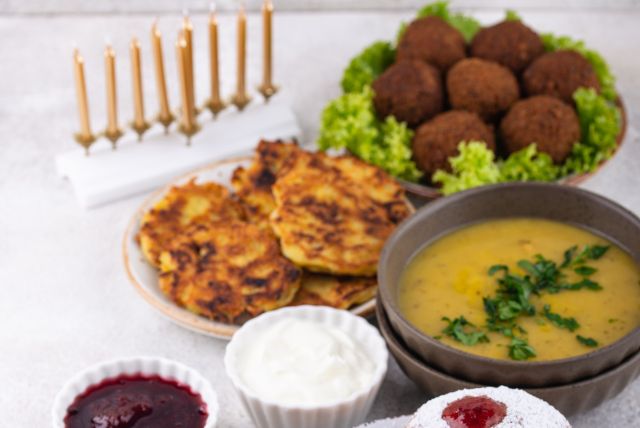 כן. בית חב"ד מספק סעודות חג ואוכל כשר. בנוסף, ניתן למצוא במסעדות מסוימות סופגניות ולביבות כחלק מהחגיגות.
